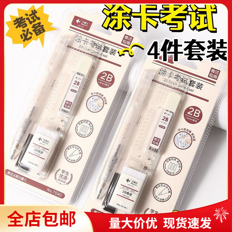 包郵便小魚学生2B塗装カードセットパソコン試験鉛筆4点セット角鉛筆鉛芯