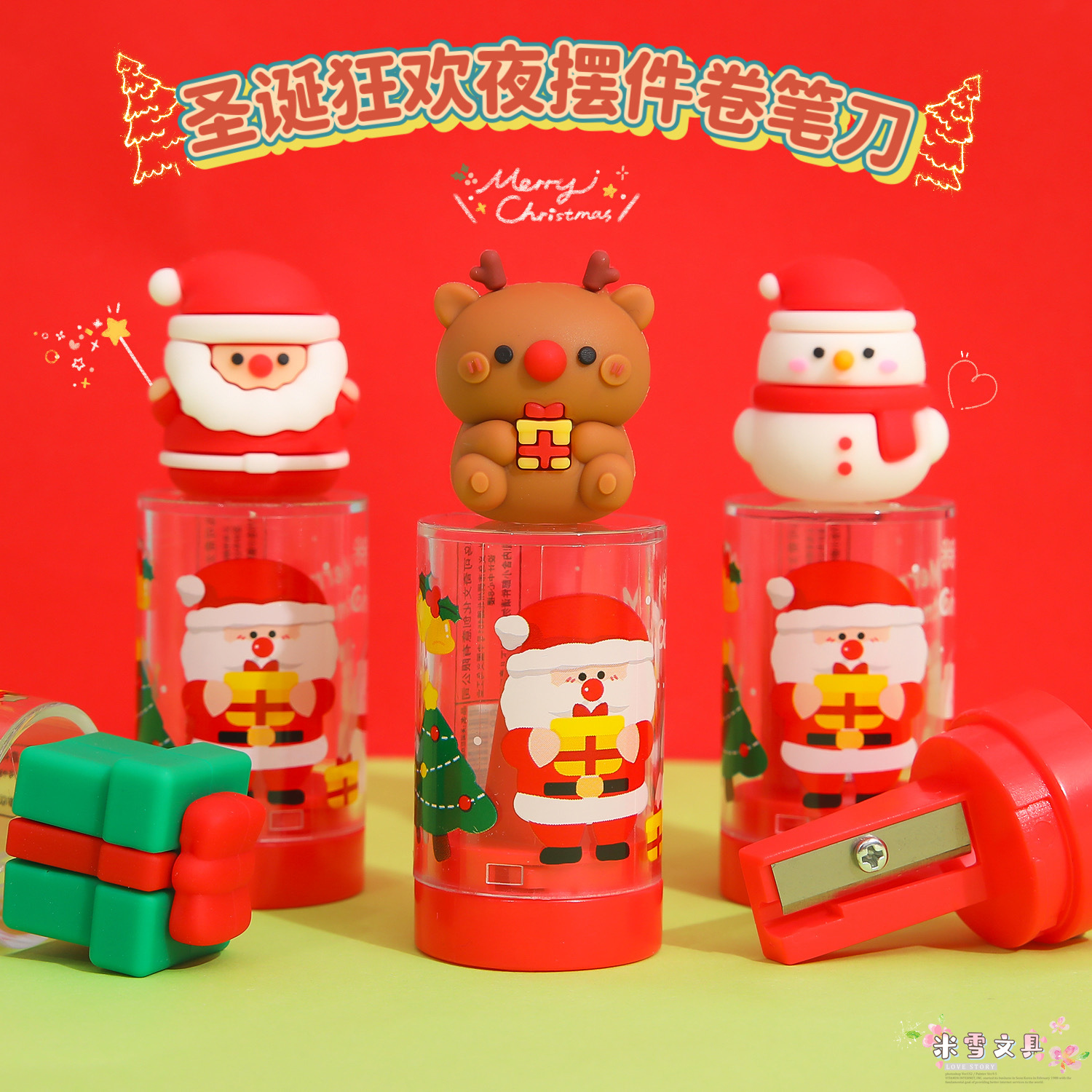 可奇新作クリスマス鉛筆ナイフ創意ヘラジカのシリコンの形の筆削り器の小学生の文房具の卸売り