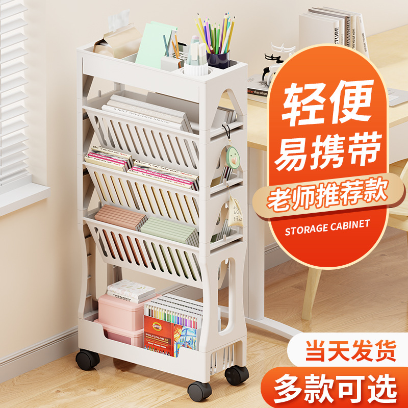 モバイルユニバーサルホイールフロアブックスタンドトロリー教室書斎読書室テーブル両面収納本棚収納ラック