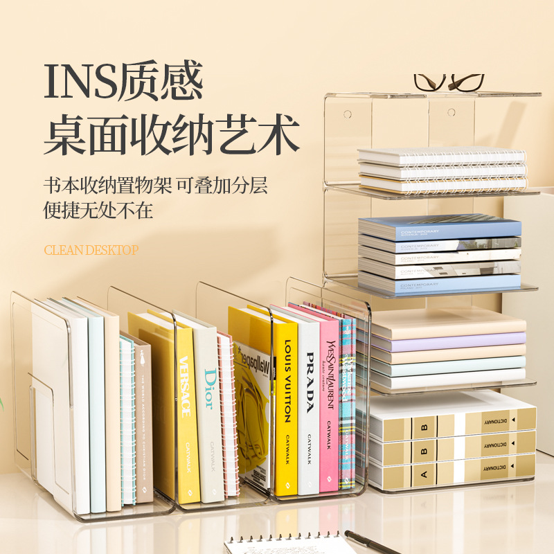デスクトップブックエンドアクリル本棚透明学生ブックデスク収納ラックオフィス寮ファイル収納ラック