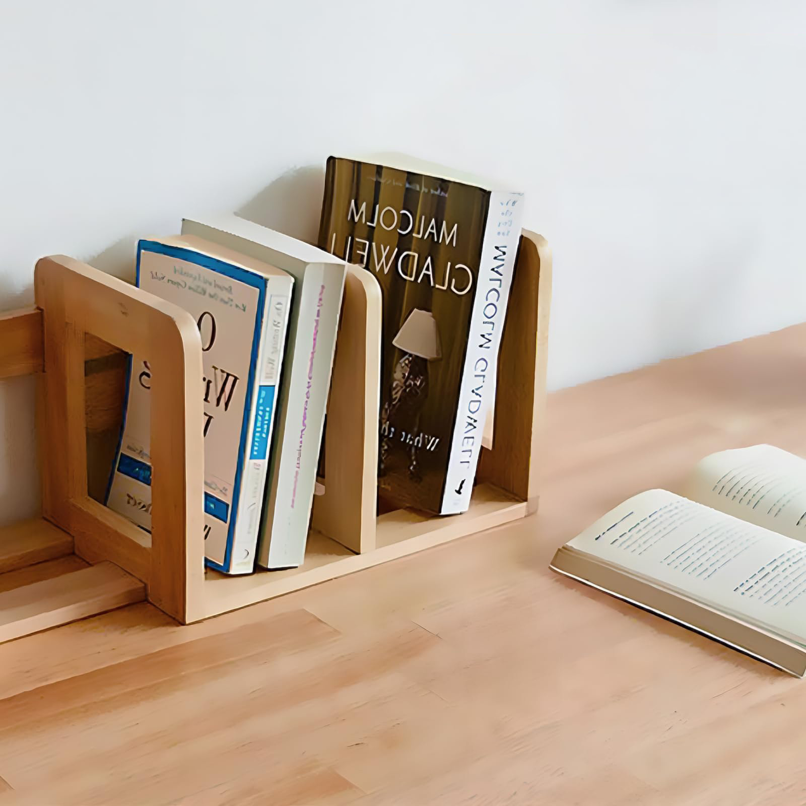 創意的な日本式のデスクトップの木製の本棚はシンプルで厚い本を収納しています。