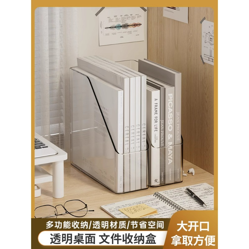 デスクトップ書立ファイルホルダーアクリル透明本棚収納ボックス固定学生本ブックホルダー