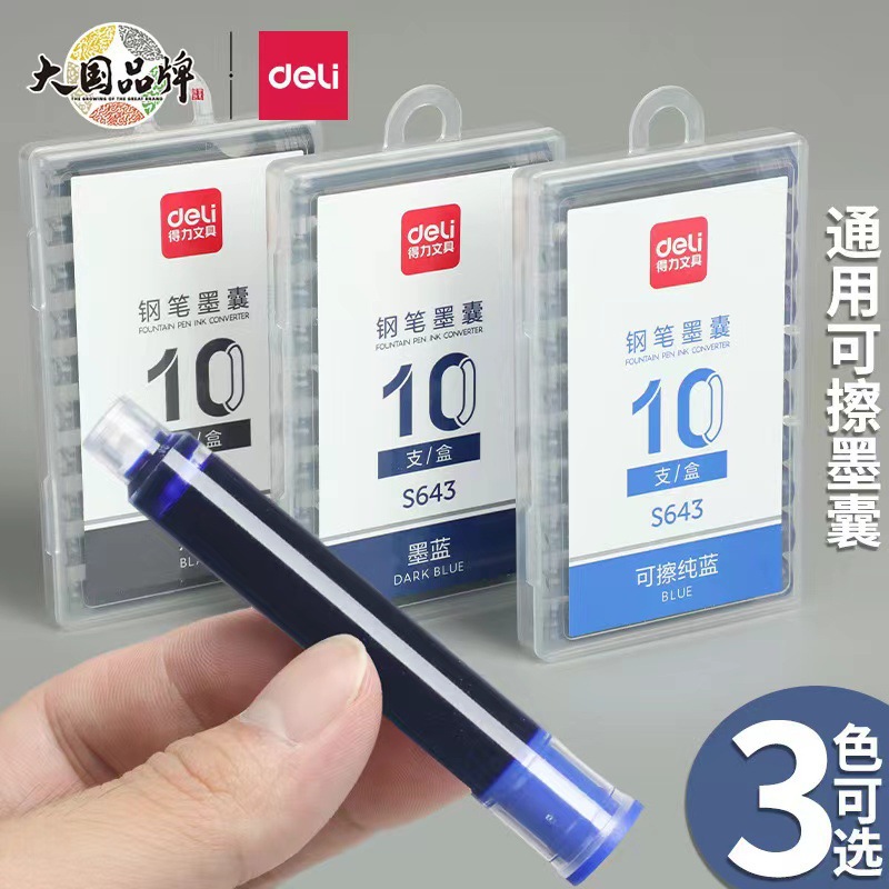 デリ S643 インクバッグ学生ペン 3.4 ミリメートル口径ユニバーサル交換消去可能な純粋な青インク学生インクバッグ