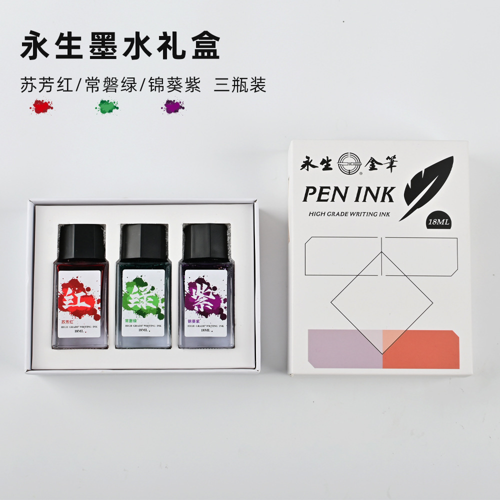 永生瓶詰めカラーインク赤緑紫青インク非炭素インク詰まりなしペンインク複数瓶インクギフトボックス