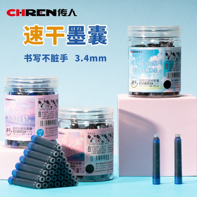 伝来ペン3.4口径速乾ペンインク袋259はインク袋30本の瓶入り青に置き換えることができる