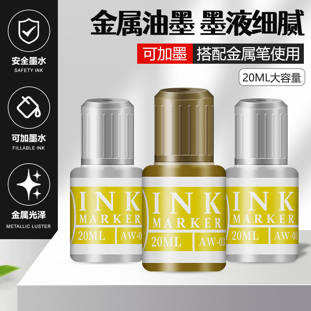 ゴールドシルバーマーカー20mlインクフラッシュ金属ペン補充液独立インク充填ページ水性インク