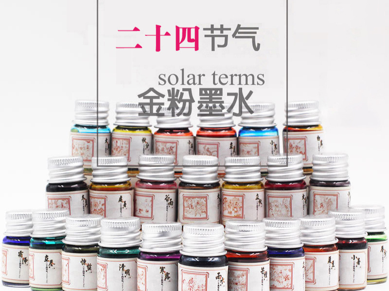 卸売り古風カラーインク金粉ペン用非炭素カラーインクガラスに水筆をつけて24色に分けて入れる