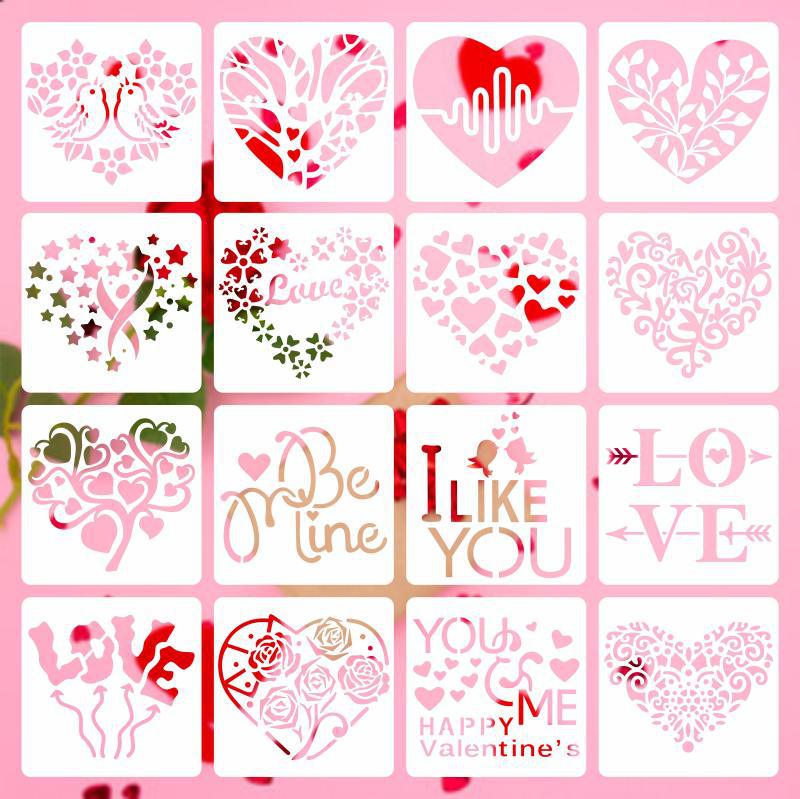 クロスボーダー 16 ピースバレンタインデー中空絵画テンプレート愛の絵画テンプレートバレンタインステンシル