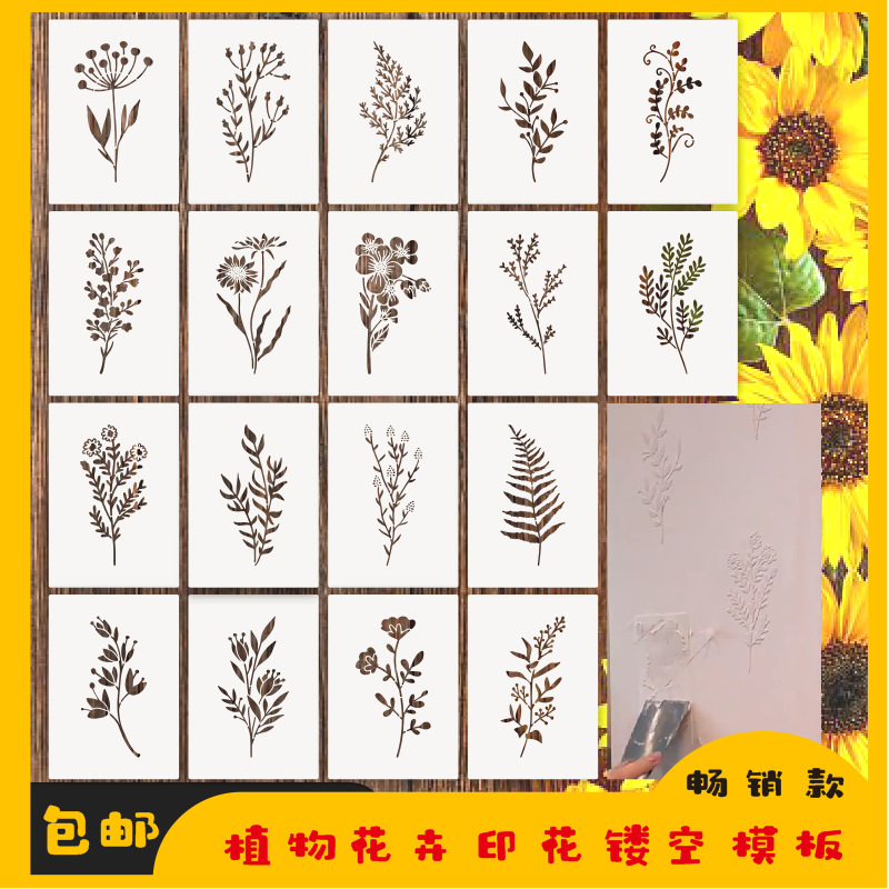 植物花卉花草树叶喷涂墙绘图案蓝染儿童涂鸦绘画浮雕印花镂空模板