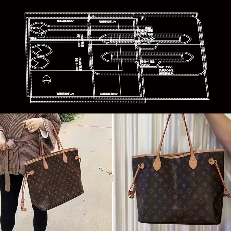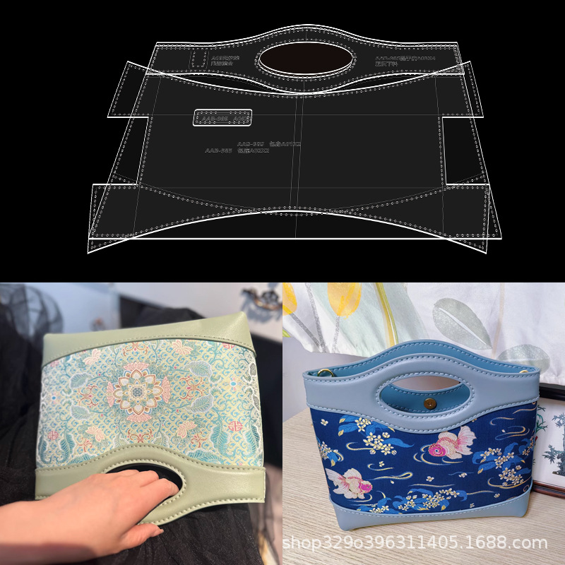 DIY 手作り革製品パターン図面トートバケットショルダーバッグ紙パターン無料切断アクリル製型