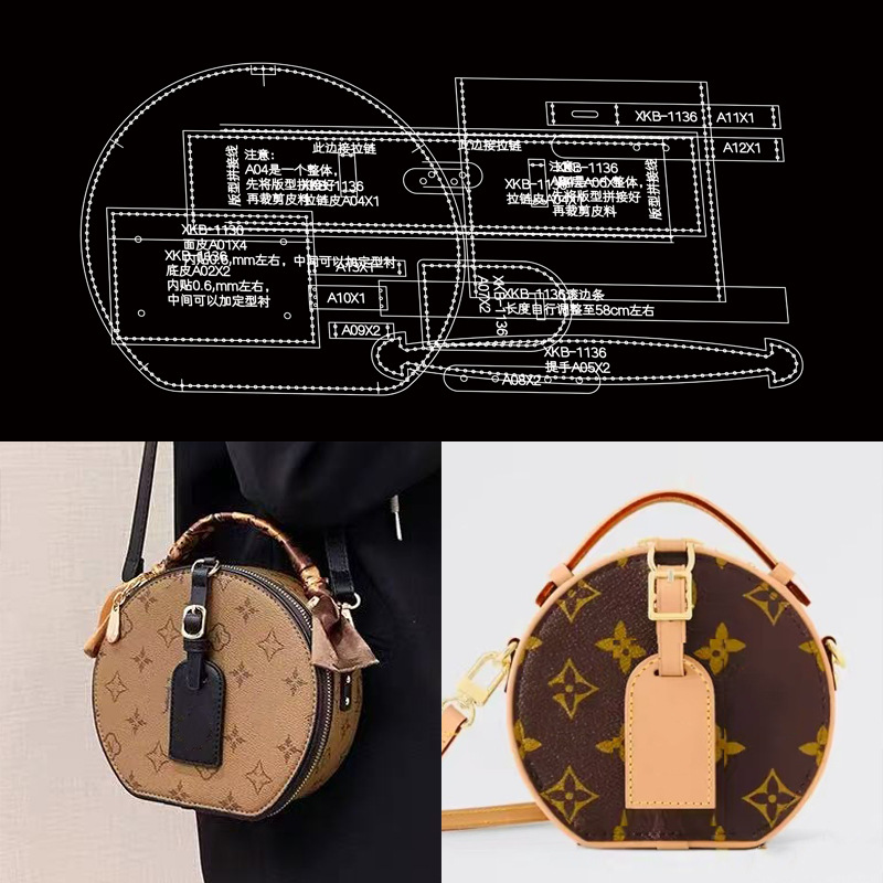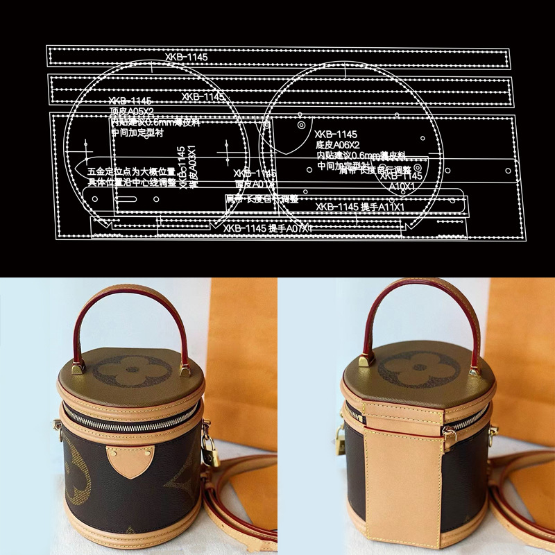 手作り革製品ポータブルラウンドバケットバッグチャンブローフォーチュンバケツショルダークロスボディバッグdiyレザーアートパターン図面