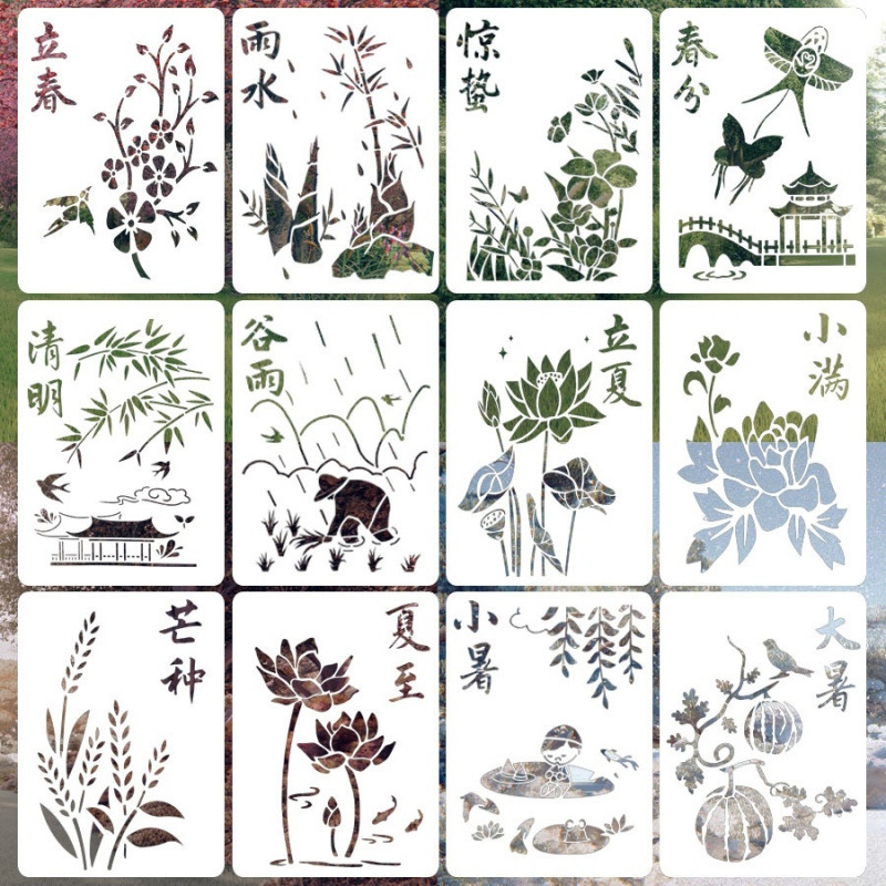 植物テンプレート絵画中空 diy 落書き中国風二十四節気金箔子供の手書き新聞ボード