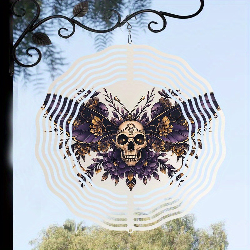 JIT を開く - 1 個の金属風鈴、深い紫色の美しい蝶と頭蓋骨のパターン曼荼羅風車