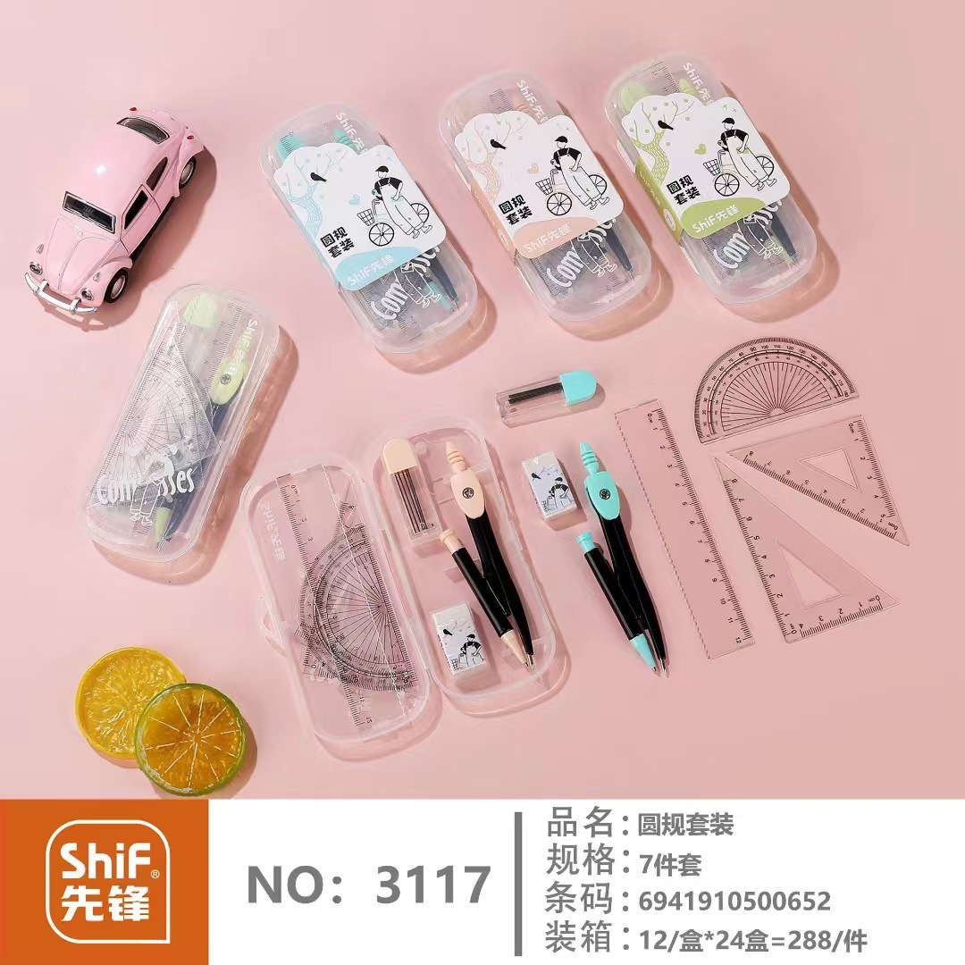 先駆者2603学生金属コンパスケースセット学生シンプル測定製図学習用品卸売り小包