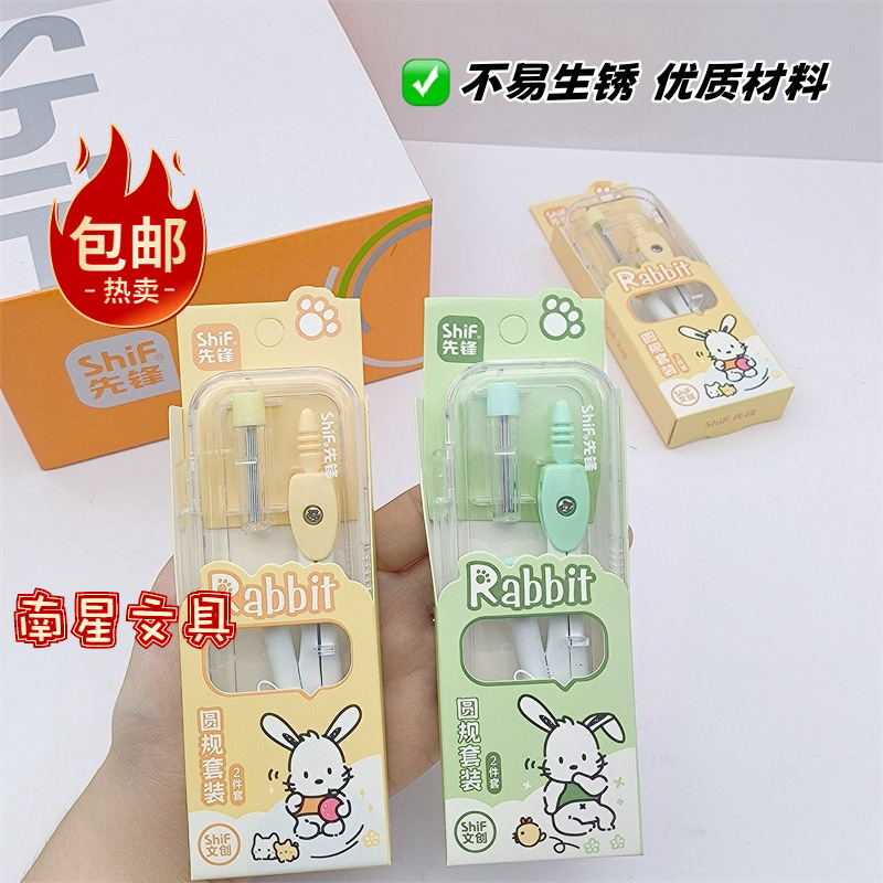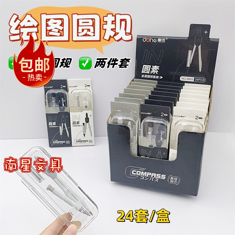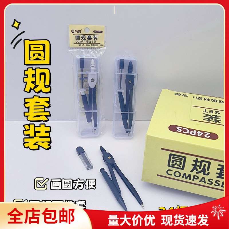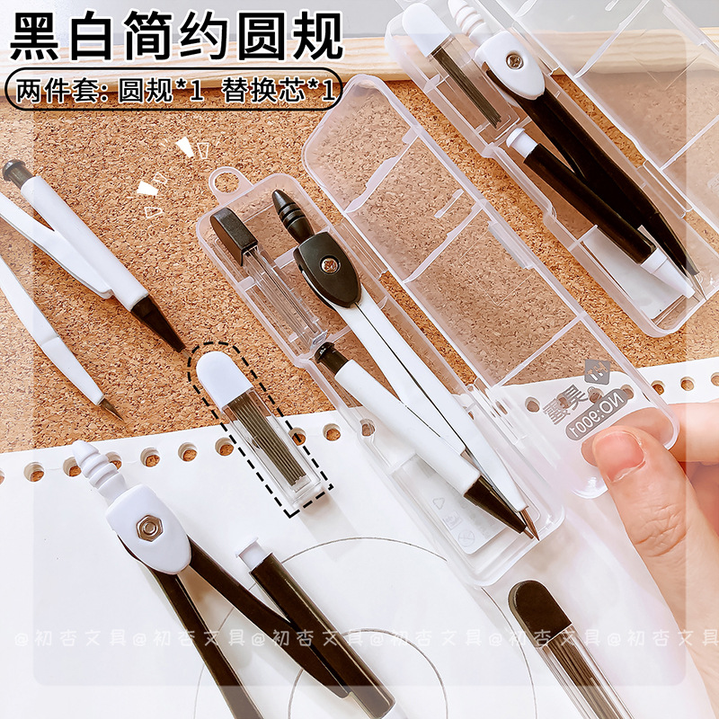送料無料 シンプル シャンルイ コンパス 学生 小型 新鮮な透明箱入り 製図用金属コンパス + 芯組み合わせ 2点セット