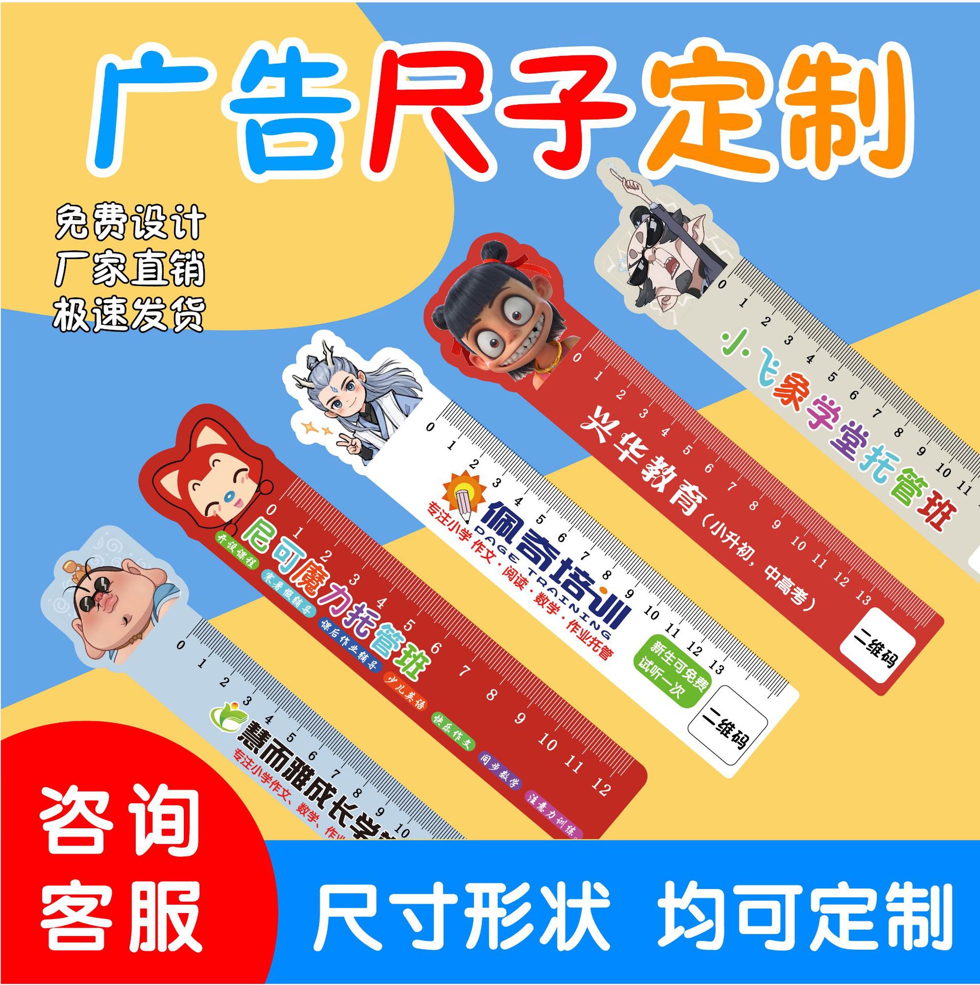 PVC広告定規オーダーメイドロゴクラス学生募集プラスチック定規学生印刷文房具定規漫画直尺オーダーメード