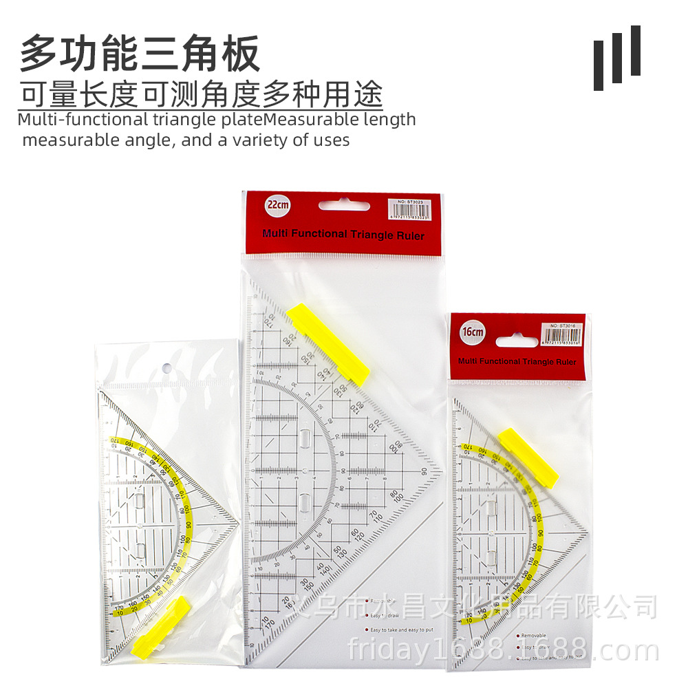 広告定規赤吊りカード16cm多機能測定三角板透明プラスチックハンドル付き学生図面定規