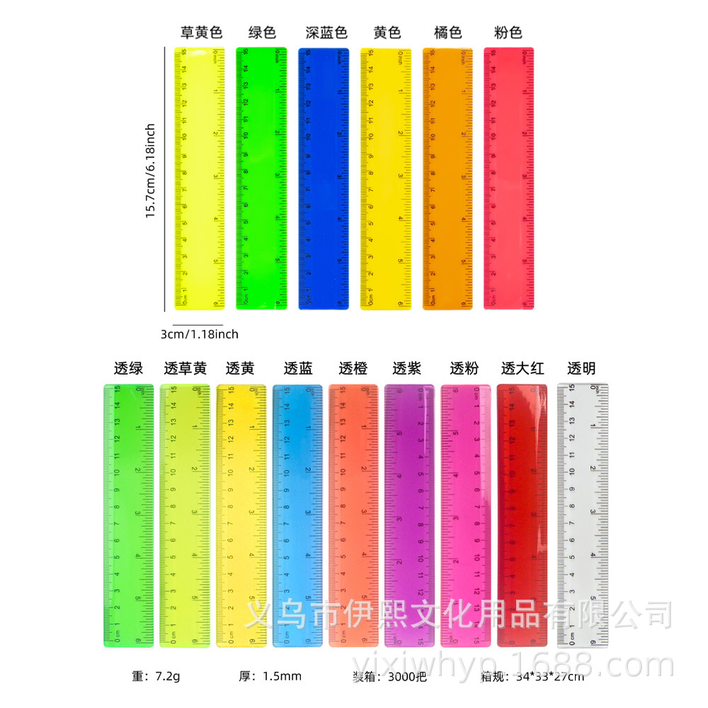 クロスボーダー15cm定規カラー直尺双斜辺プラスチック定規小学生セット定規印刷広告定規ロゴ模様