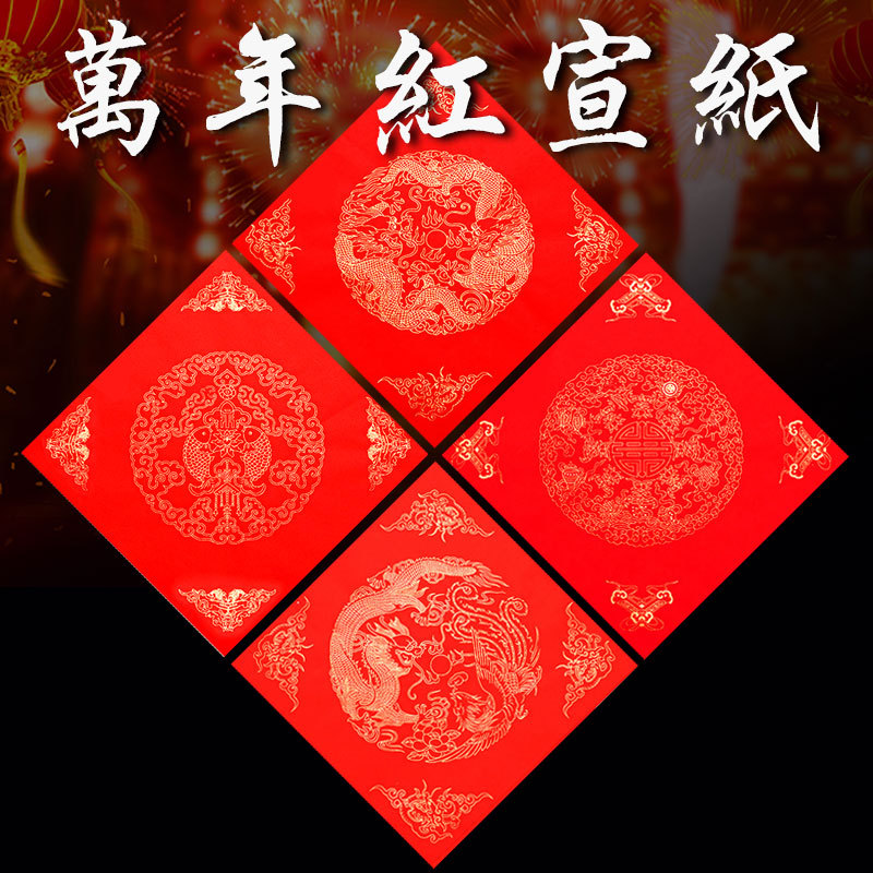 メーカー直販安徽万年紅宣紙散金龍紋宣紙春聯紙書道創作半生半熟