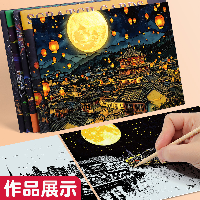 A5はがき夜景スクレーパー都市風景建築スクレーパー子供diy手作り環境保護スクレーパー
