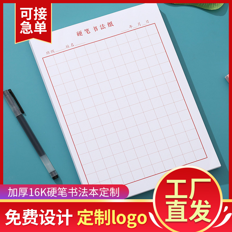 メーカーは16点を厚くして、学生の硬筆書道本の方田米字格ペン練習紙にロゴをつけた