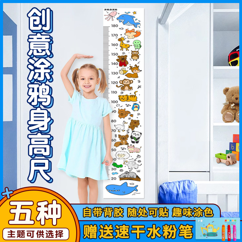 子供の身長を測るウォールステッカー。落書きしてから貼るタイプで、壁を傷つけず剥がせる。正確な身長測定器。