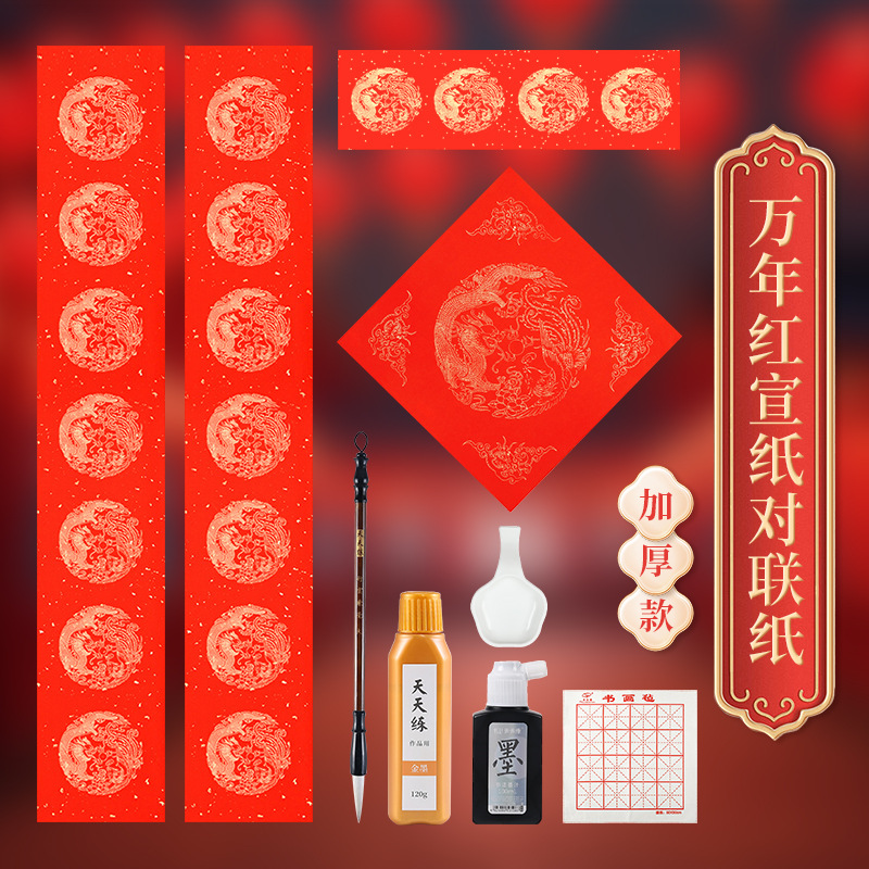 万年紅箔押し対聯紙ジョー移転正月春聯毛筆書道手書き空白増厚宣紙対聯紙