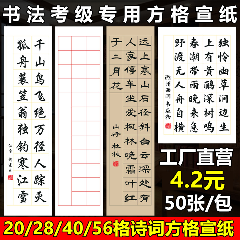 四尺二開三開半生熟宣紙20 28格子書道試験級専用作品紙練習紙