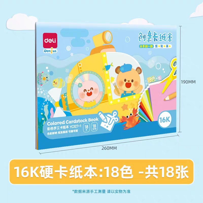 デリ YC327-1 カラー段ボールブック手作りハード段ボール 16K 小学生アート絵画 diy 切り絵増粘