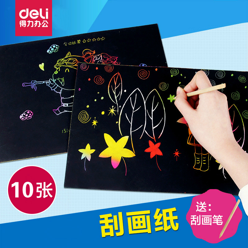 デリ3244 スクラッチペーパー 子供用お絵かき紙 8K カラフルスクラッチペーパー 画用紙 10枚 無料竹ペン付き スクラッチペーパー