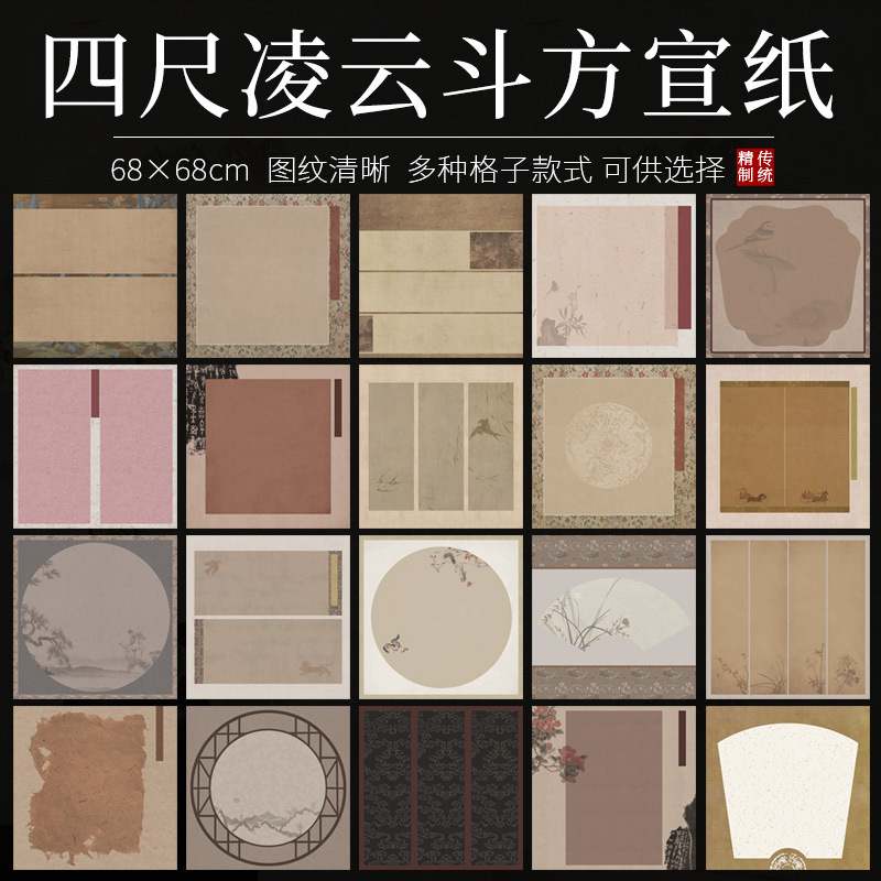 微噴蝋染四尺宣紙斗方毛筆書道作品紙軟筆書道試合専用紙半生半熟
