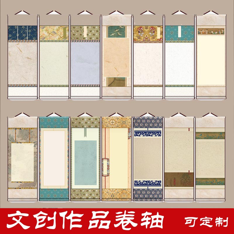空白の巻物の書道の手巻きの文は宣伝紙を作って軸の毛筆の字の国画を掛けます。