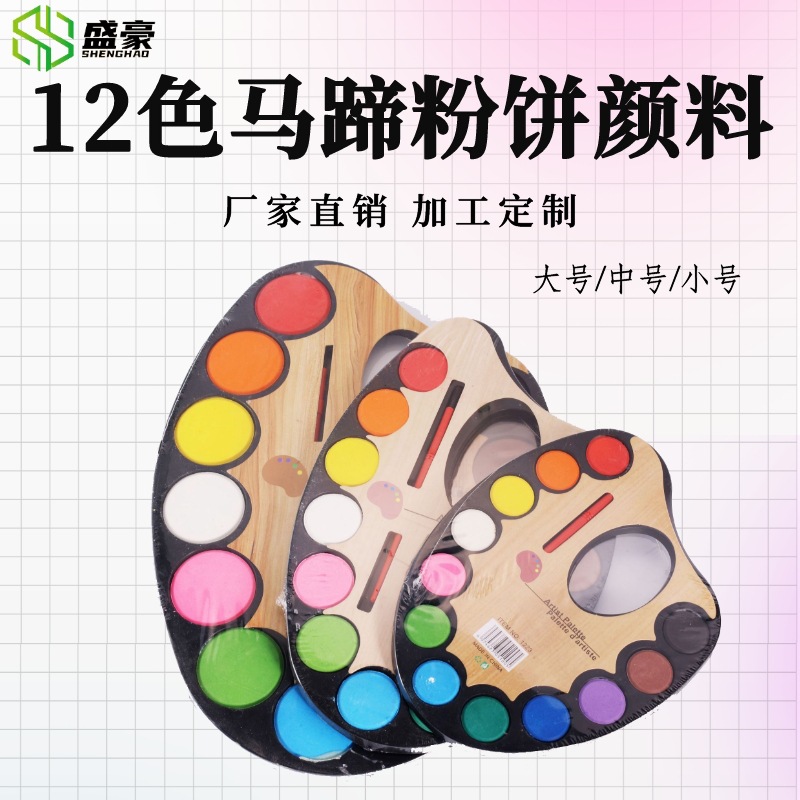 工場直販 12 色大中小馬蹄固形水彩パウダー環境に優しい楕円形パレットパウダー