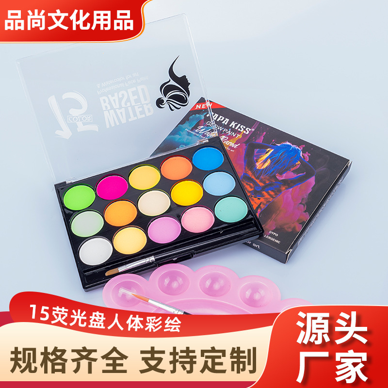 顔料ボディペイント水溶性15色蛍光スクエアプレート発色高速乾燥お手入れ簡単子供用フェイスペイント