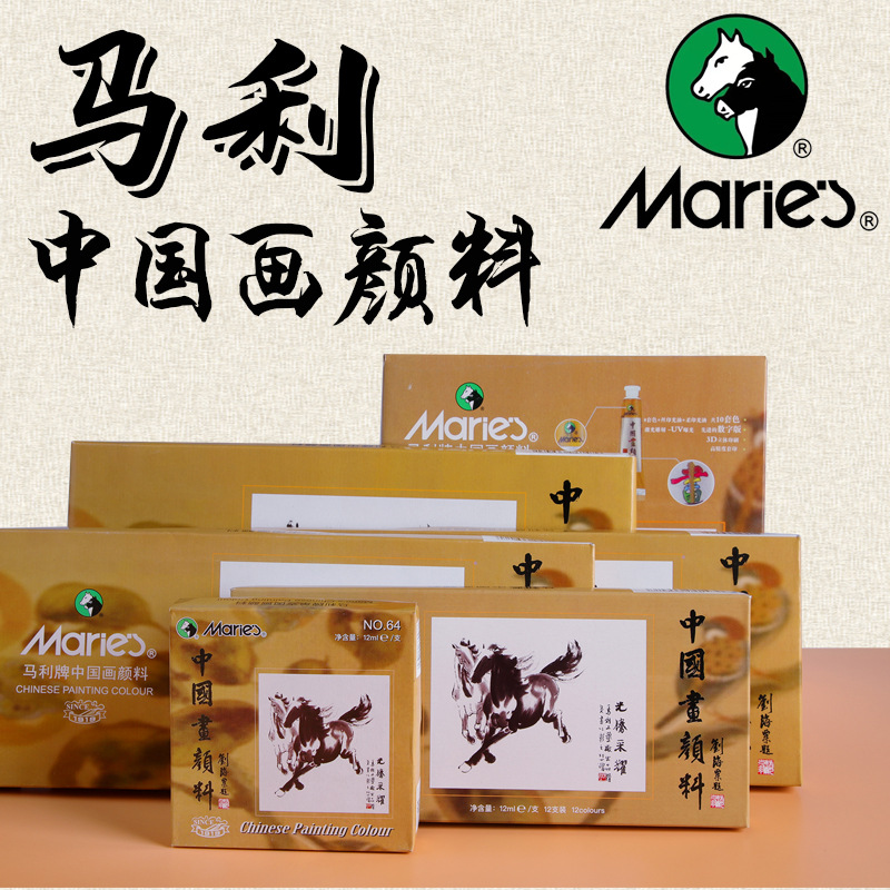 マリ国画絵の具初心者セット12色24色中国画用品道具セット水墨画工筆材