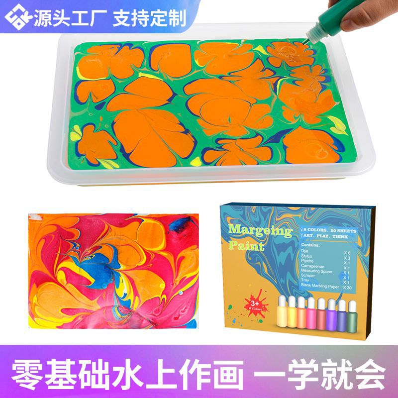 子供8色水拓絵セット浮水絵濡れ拓絵水浮き絵マーブルペイントdiy材料