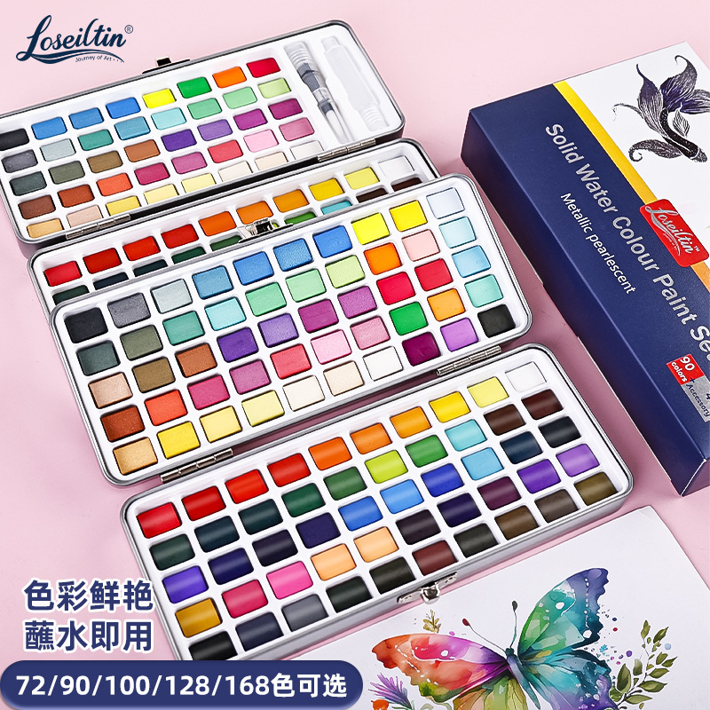 固形水彩絵の具 100/128/168 色セット真珠光沢のあるポータブルアート初心者絵画ネイルアート絵の具