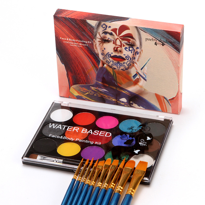 新しい15色の水溶性の顔の色のワールドカップの顔の色のハロウィーンの絵の具の顔の塗り絵の人体の膏の速乾