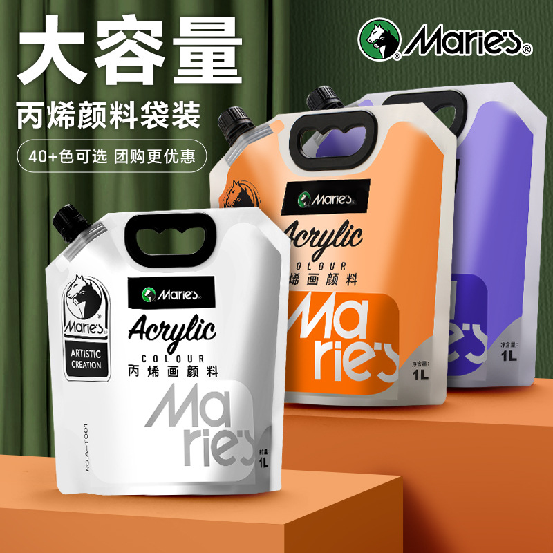 マリアクリル絵の具1L袋入り白色大容量壁絵専用バケツ入り防水色落ちしない美术卸