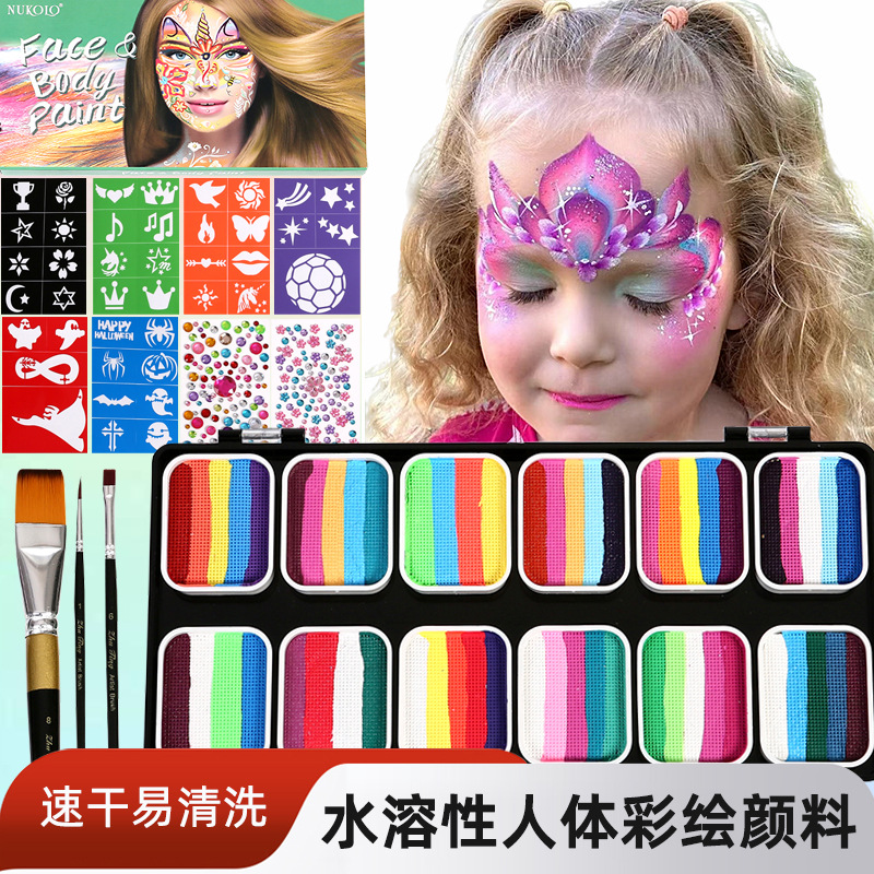 ヌカクの現物の12色の虹の条のパレットの人体の彩色の絵の具は水洗いすることができます。