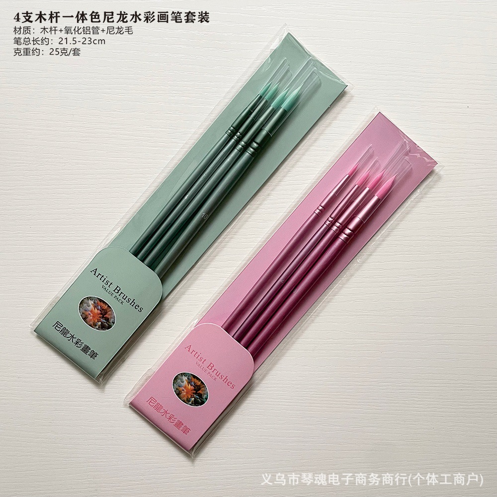 メーカー直販4本の木の棒一体色ナイロン水彩画ペンセット学生美術絵画アクリル塗りペン