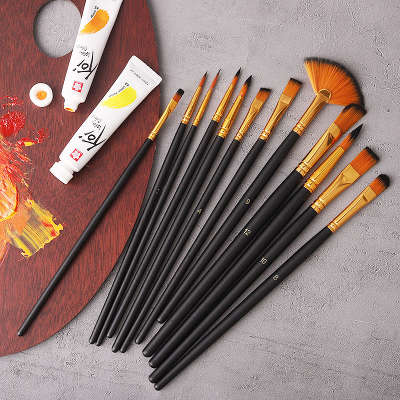 ナイロンアクリル水粉水彩絵筆凡高丸頭黄棒双号絵筆ツールセットメーカー卸売り