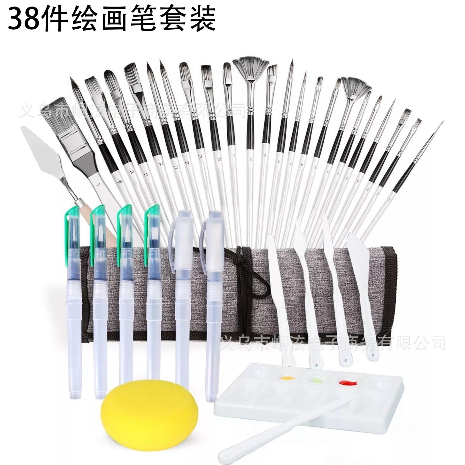 クロスボーダー熱売38本ナイロン毛絵筆セット銀灰棒ペンカーテン油絵筆水粉水彩画ブラシ工場