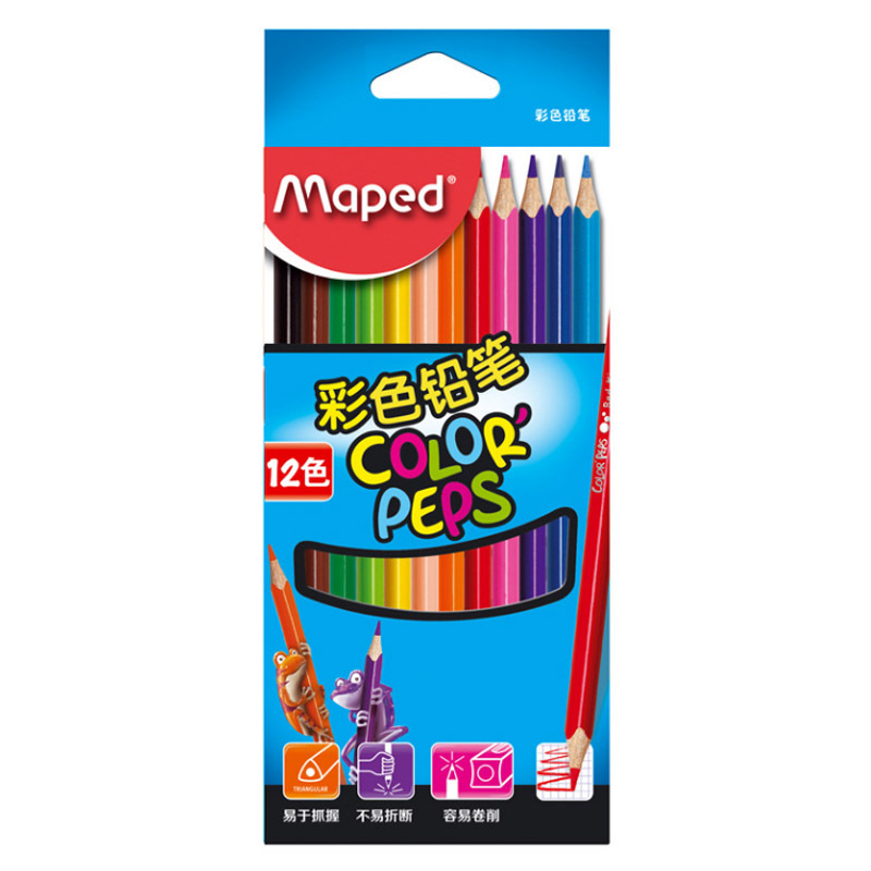Maped馬培徳12色鉛筆三角棒カラー鉛183212CH色鉛筆