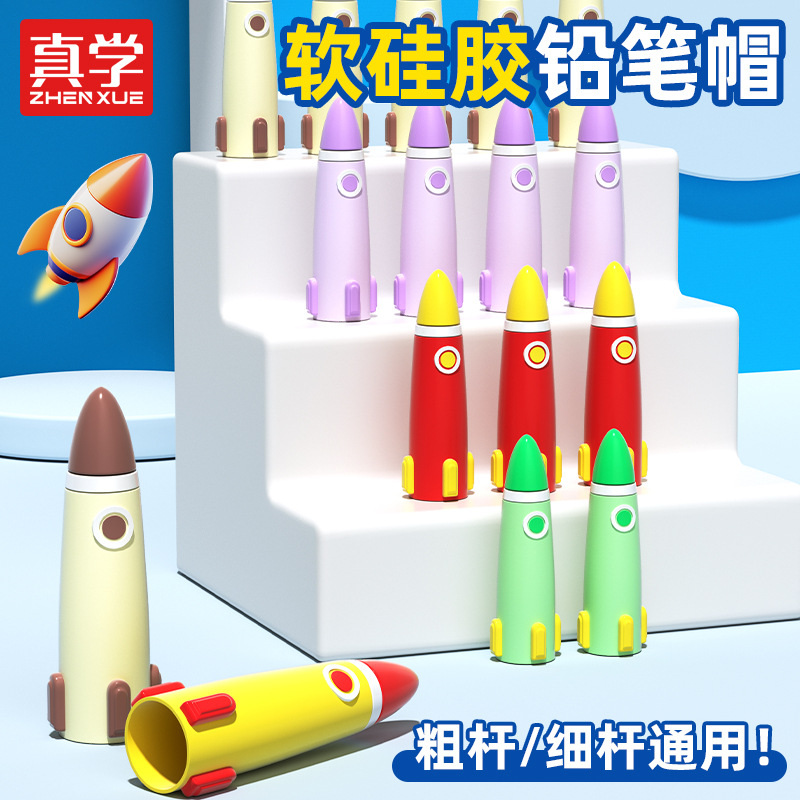 かわいいロケットの形の漫画ペンキャップ鉛筆保護カバーエクステンダー学生幼稚園小さな賞品文具ギフト