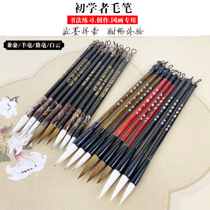 初心者向け書道筆、狼羊と毛、中国画狼毛筆、書道入門トレーニング、白雲羊毛筆