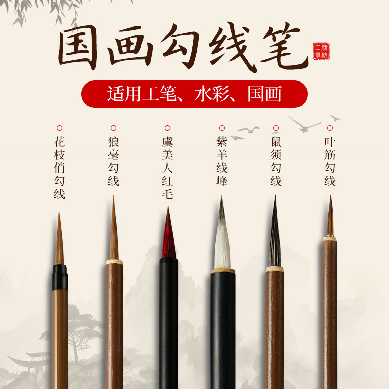 葉筋筆大中小毛筆国画山水画水墨画筆爪彩色画線筆
