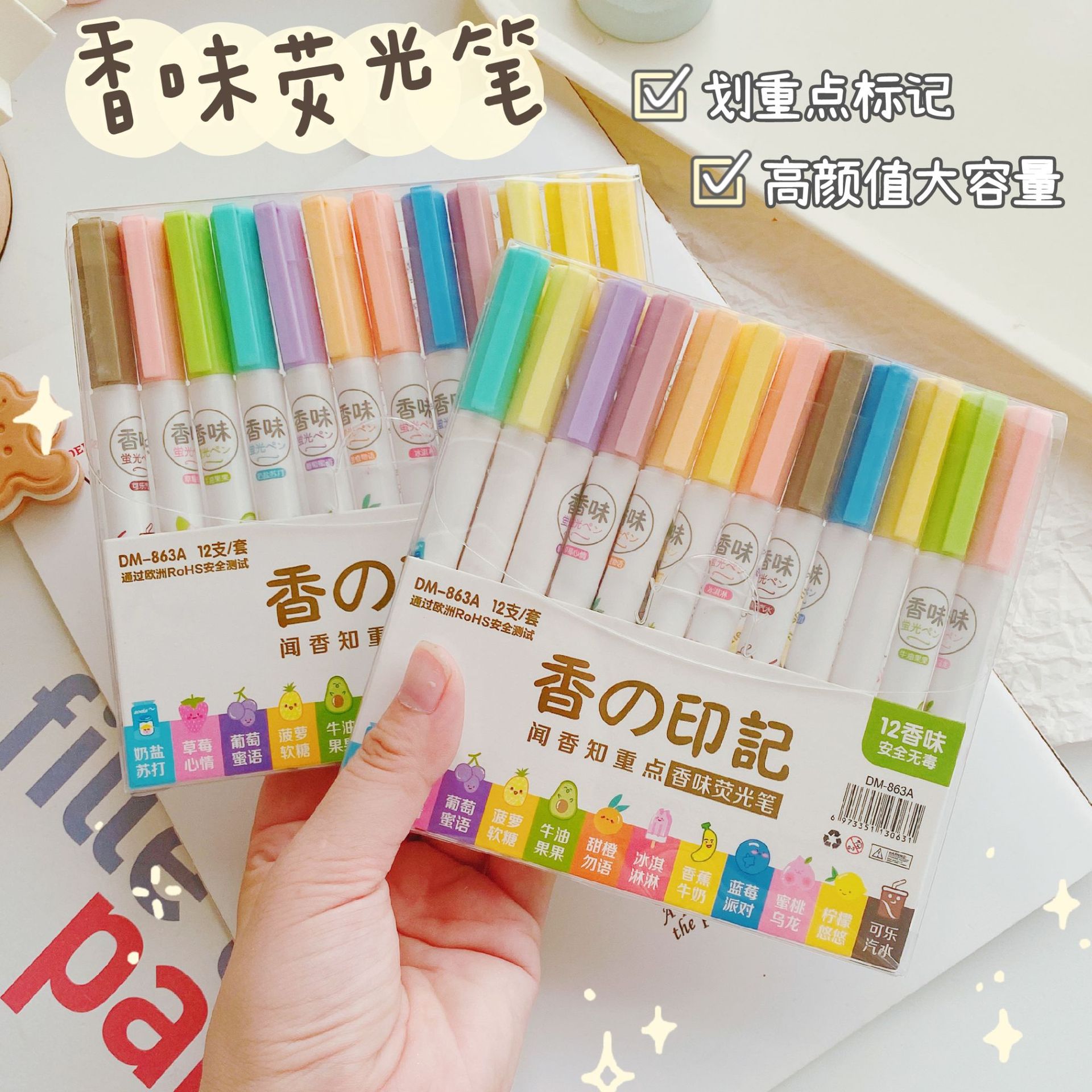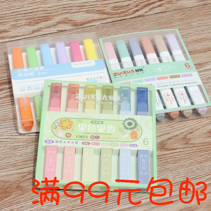 Zuixuan大容量果色果香蛍光ペン淡色柔らかい目6色香り超ソフトヘッドマーカー