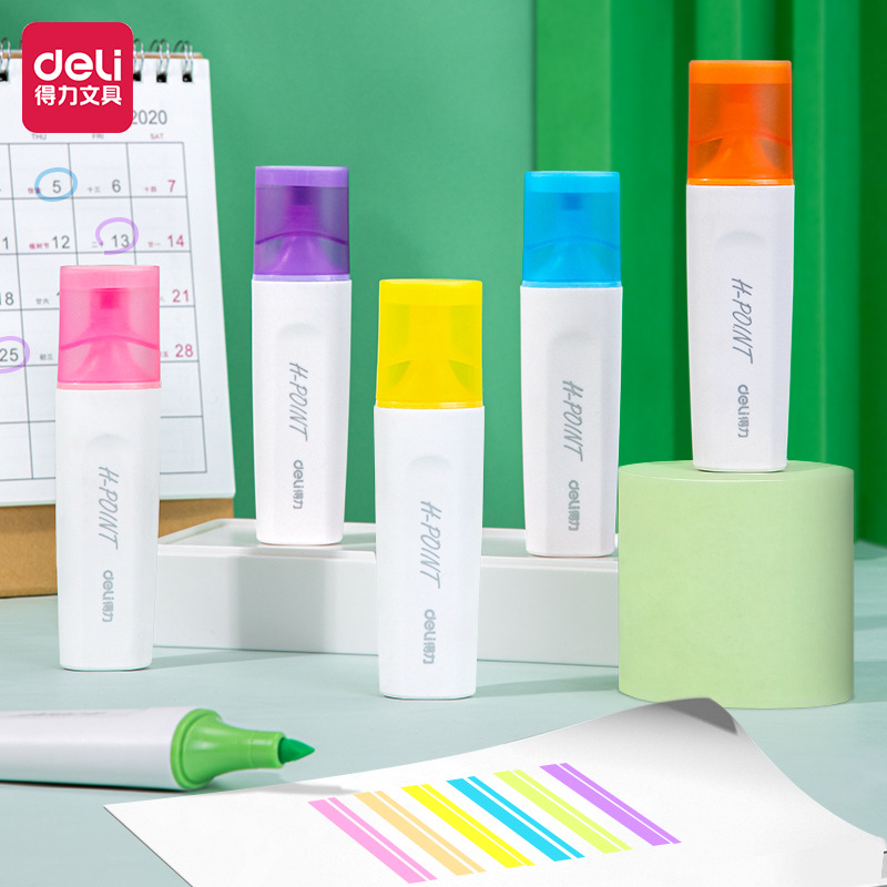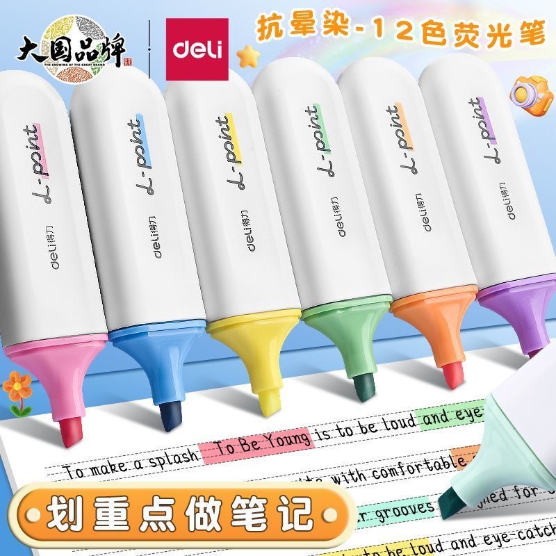 デリ蛍光ペン両頭大容量耐汚れマーカーペン学生用マーカーペン手帳ペン蛍光ペン卸売