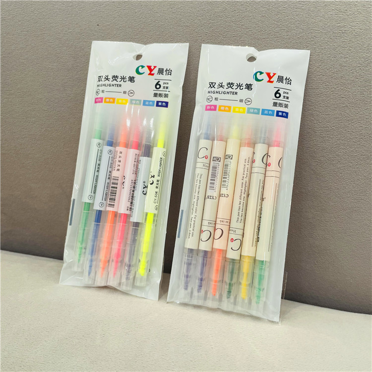 漫画二重蛍光ペンセット6本入学生文房具画重点句マーカーカラー斜頭マーカーペン